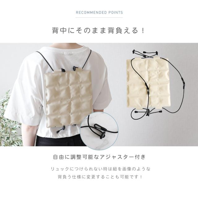 | 【日常シーンで幅広く活躍】 リュックにはもちろん、そのまま背中に背負うことも可能です! |