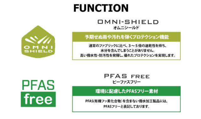 PFAS(有機フッ素化合物)を含まない撥水加工製品には、PFASフリーと表記しております。