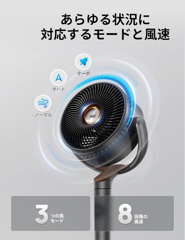 扇風機 サーキュレーター 自動首振り 静音 パワフル送風 省エネ 8段階風量 DCモーター コンパクト 高さ調整可能 リモコン付き 扇風機リビング 空気循環 Dreo