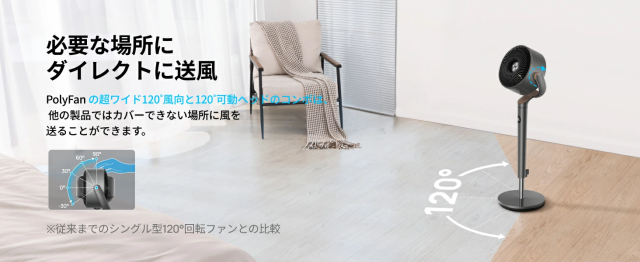 【風量8段階調節&120°左右自動首振&120°上下手動】