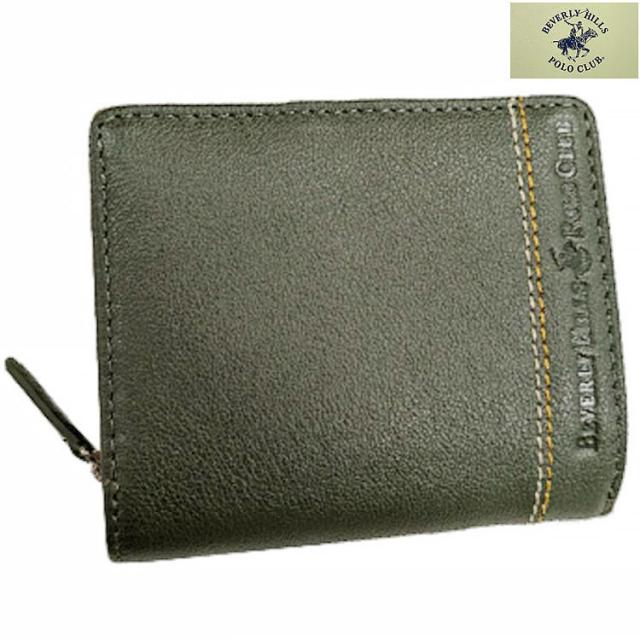 〓BEVERLY HILLS POLO CLUB〓 二つ折り財布/ファスナー小銭入れ付◆牛革◆グリーン系◇ ポスト投函便可 61B404-50