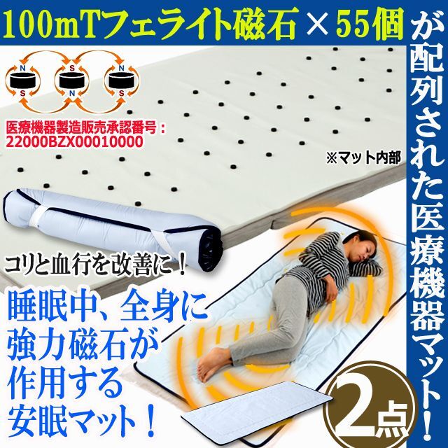 睡眠中に全身に強力磁石100m×55個が作用する安眠マット!