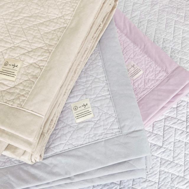 キルト自体に厚みをもたせ、ふんわりと柔らかな肌触りが特徴のキルトケットです。表・裏生地、詰めもの、すべてに綿を使用しています。吸水性・吸湿性に優れた綿を使用しているので汗をかきやすい方も快適にお使いいただけます。
