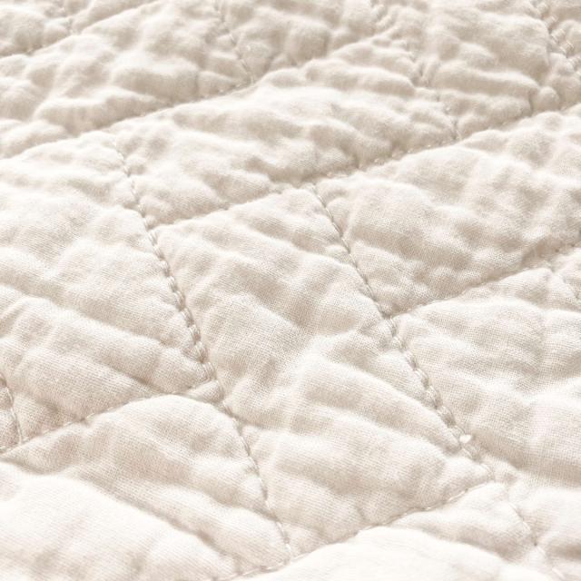 製品にした後に水洗い加工をすることで、ふっくらとしたやさしい仕上がりに。キルト自体に厚みを持たせ、立体感のある肌触りと綿独特のシワ感を出しています。