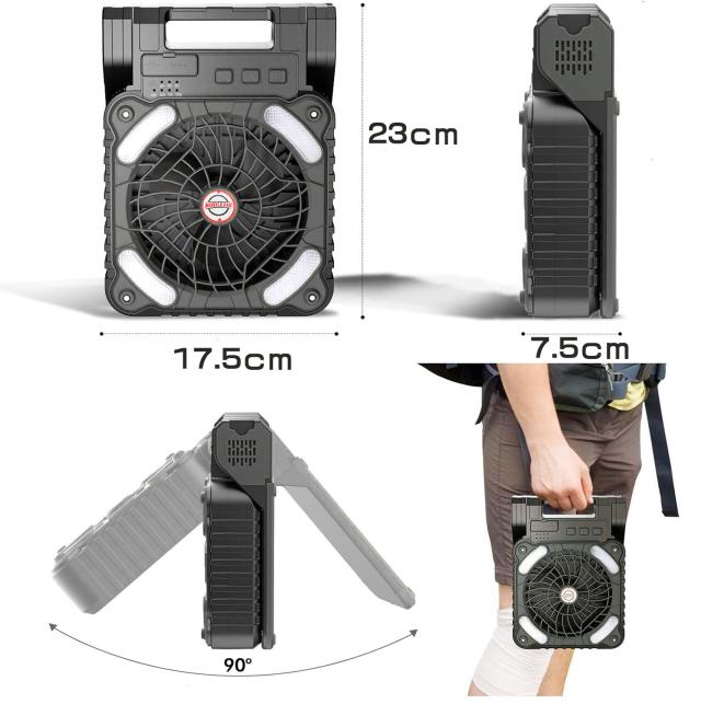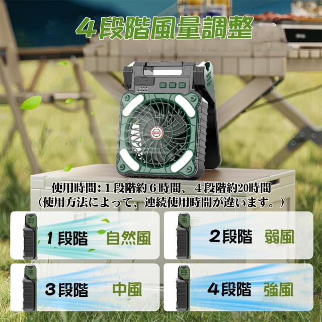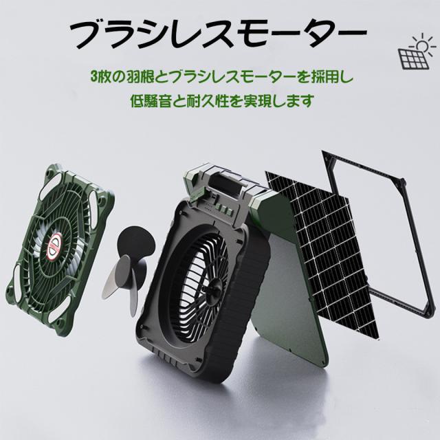 キャンプ扇風機 ソーラー扇風機 4段階風量 ソーラー充電 3段階ライト付携帯扇風機 アウトドア 防災 キャンプ用品 持ち運び便利 携帯扇風機 PSE認証済み
