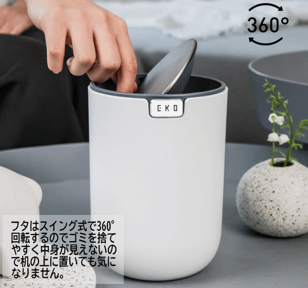 EKO ゴミ箱 ダストボックス スイング式 1.5L スイングカン ごみ箱 ふた付き 小型 ミニ 卓上 デスク ごみ入れ キッチン 洗面所 トイレ ホワイト ブラック グレー ブルー 全4色 テーブルトップカン1.5L EK9206MP-1.5L