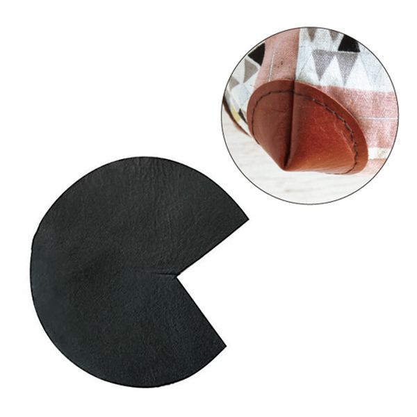 ◆布の表地に置き、革パーツを内側に入れ込んでから裏から縫ってください。