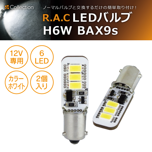 【在庫限】R.A.C LED H6W 12V6W キャンセラー内蔵 発光色ホワイト 2個入り (商品コード:500209)