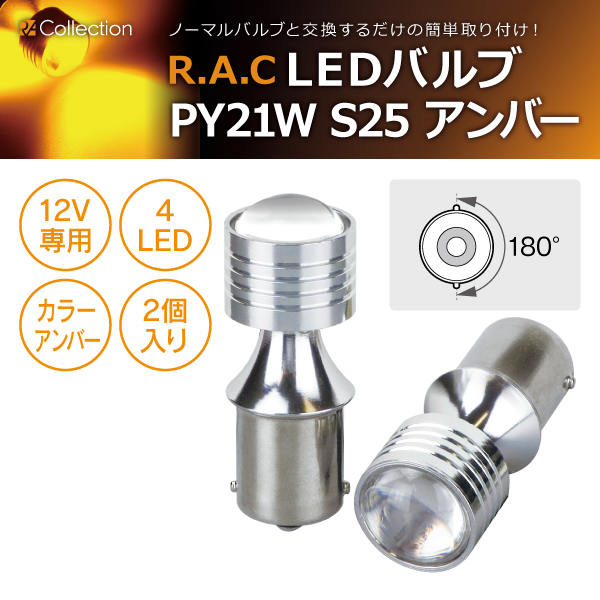【在庫限】R.A.C LED P21W S25 12V21W 発光色アンバー 2個入り (商品コード:500237)