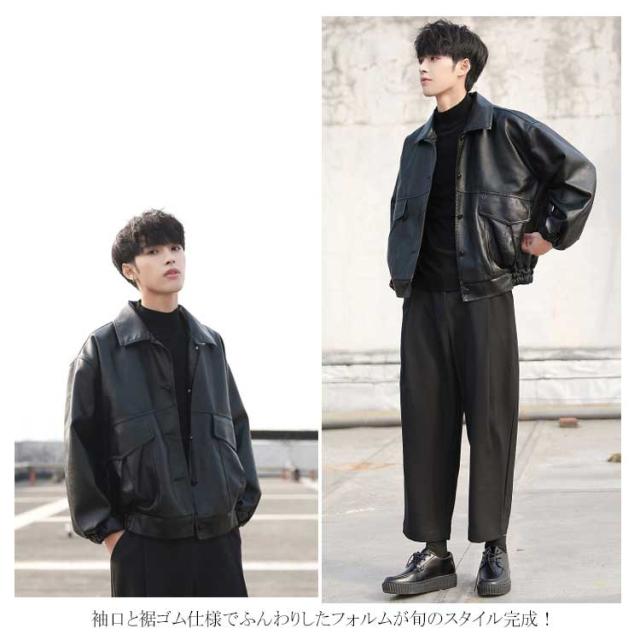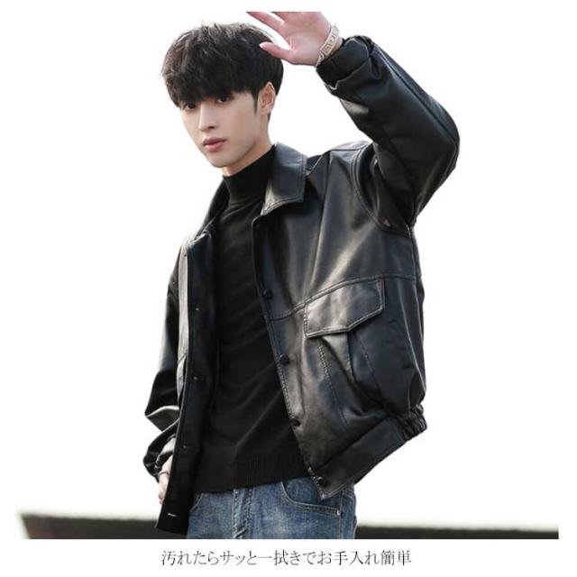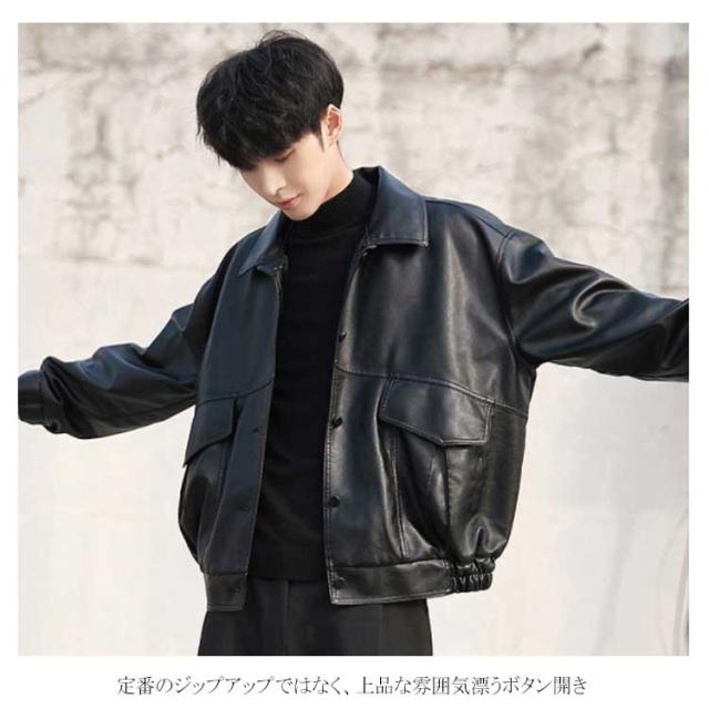 レザージャケット メンズ PU ライダース ジャケット ジャンパー ブルゾン アウター コート ショート丈 オーバーサイズ ビッグシルエット ミリタリージャケット ボタン 秋冬 春 おしゃれ