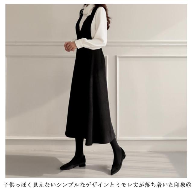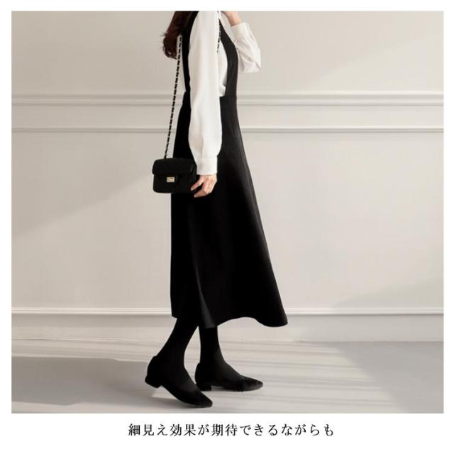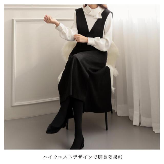 | 細見え効果が期待できるながらも お腹まわりが楽ちんな大人女子のジャンパースカート。 インナーにリボンブラウスやハイネックニット、ノースリーブやTシャツなど色々なアイテムにマッチ! 合わせるインナー次第、春夏秋冬オールシーズン大活躍するまさに万能アイテムです。 子供っぽく見えないシンプルなデザインとミモレ丈が落ち着いた印象◎ ハイウエストデザインで脚長効果◎ お手持ちのトップスとも相性よく、ディリーに大活躍してくれること間違いなし。 | |