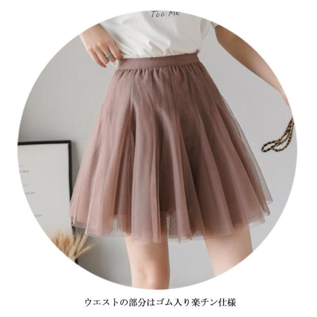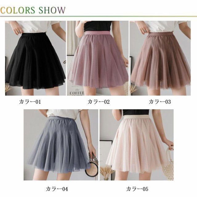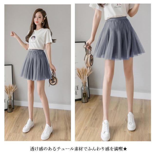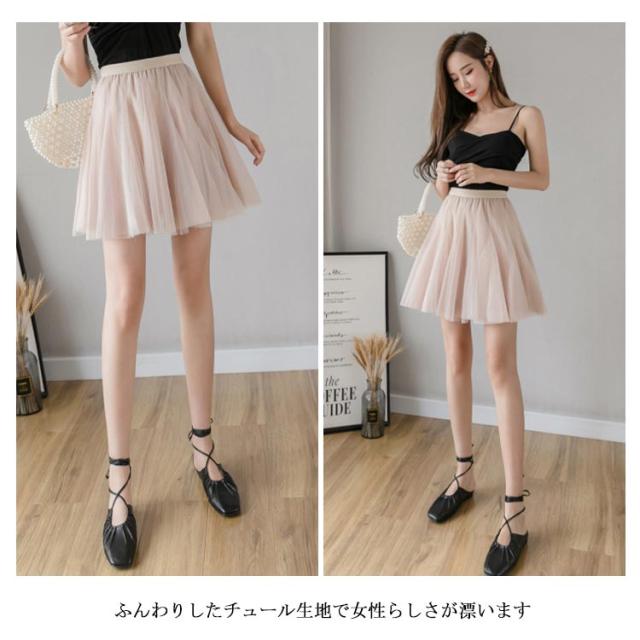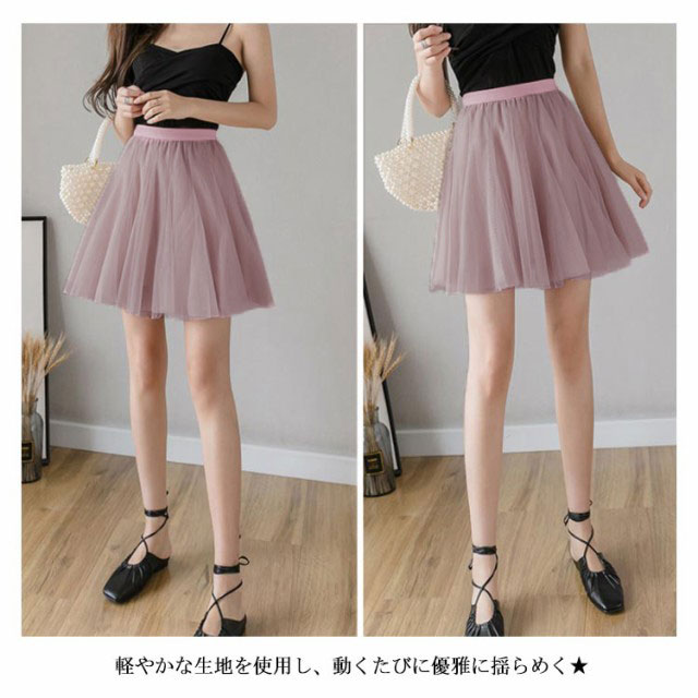 | ふんわりと魅力的なチュールフレアスカート ふんわりしたチュール生地で女性らしさが漂います 短めの丈で美脚を綺麗に出します ウエストの部分はゴム入り楽チン仕様 | |
