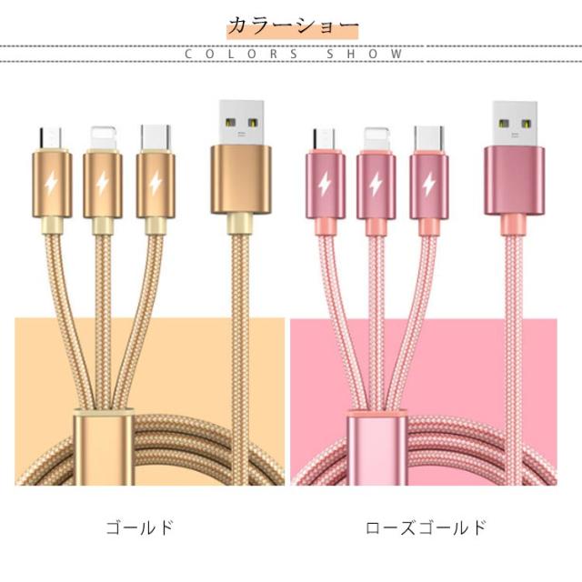 iOS/Micro USB/USB Type-C 3in1 充電ケーブル ライトニングケーブル microusb typec スマホ iPhone11/8/7/6/SE Android Xpeira AQUOS arrows Galaxy 充電 ケーブル マイクロusbケーブル iphone タイプc アイフォン アンドロイド 充電器 ipad タブレット usbケーブル