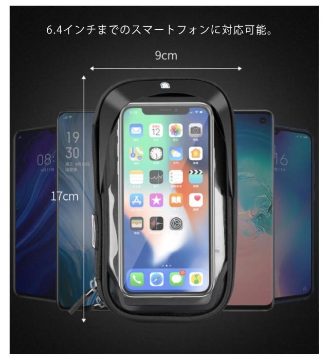 | 自動車用撥水スマホホルダー 6.4インチスマホ対応 タッチスクリーン 防水。 優れた防水機能 高品質な防水素材を採用し、突然な雨から携帯を保護する。 サンバイザーが付いて日光からスマホを保護。 高感度タッチスクリーン対応 スマホをバッグに入れた状態でも、快適に操作可能。 内側にはカードや鍵などを収納できるポケットも付いており、抜群の収納力を誇ります! イヤホンホールも設置しておりますので、音楽を聞いたり充電しながら自転車を運転していただくことも可能です! | |