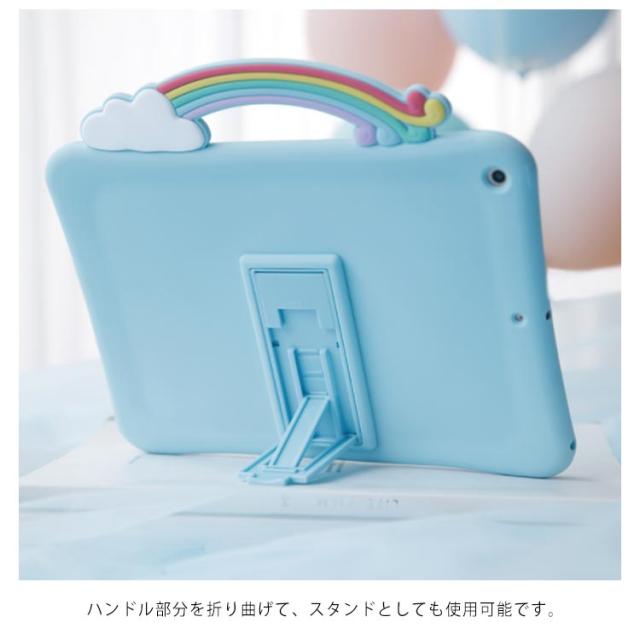 | かわいいなiPad用ケース♪プレゼントにも最適。小さなお子様が使用しても安心な衝撃に強いiPad Pro/iPad air2ケースです。持ち運びしやすいハンドル付きです。 ハンドル部分を折り曲げて、スタンドとしても使用可能です。 | |