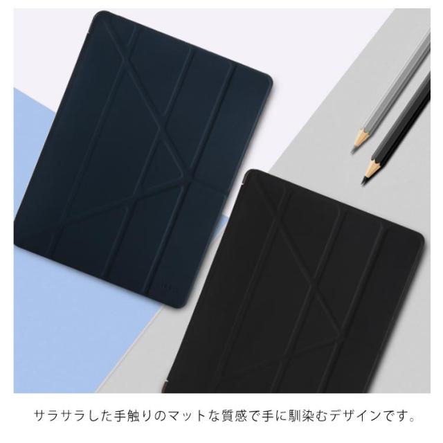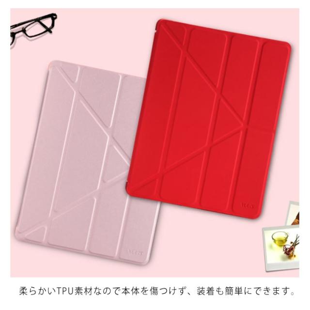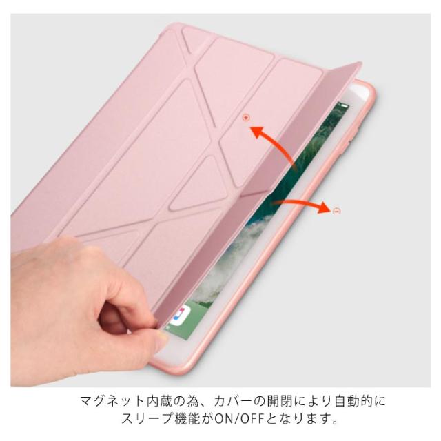 | iPadケースPro10.5/9.7インチ2018/Air2/Mini12345 落ち着いたカラー、シンプルなデザイン サラサラした手触りのマットな質感で手に馴染むデザインです。 横置き・縦置きどちらにも対応できるのでお好みのスタイルでiPadをお楽しみいただけます!! 柔らかいTPU素材なので本体を傷つけず、装着も簡単にできます。 マグネット内蔵の為、カバーの開閉により自動的にスリープ機能がON/OFFとなります。 | |