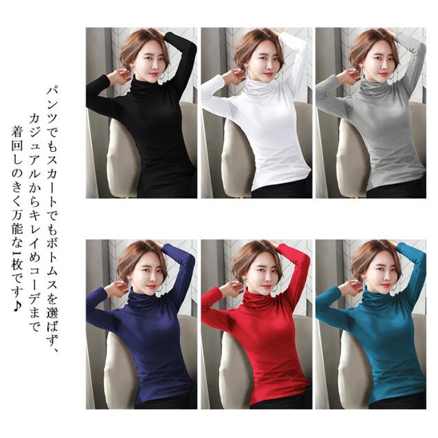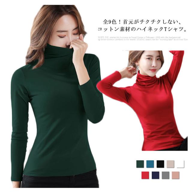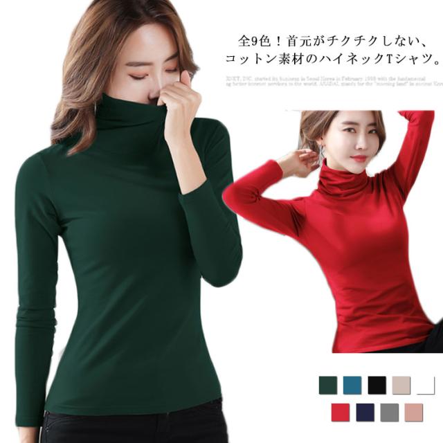 全9色!ハイネックカットソー ハイネックtシャツ tシャツ カットソー ハイネック インナー トップス 長袖 無地tシャツ コットン 防寒インナー スリム 大きサイズ 秋 冬 春