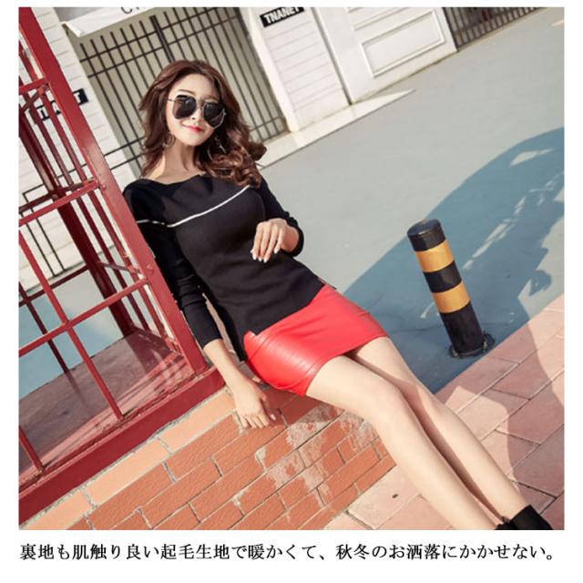 ミニスカート タイトスカート フェイクレザースカート 裏起毛 スカート