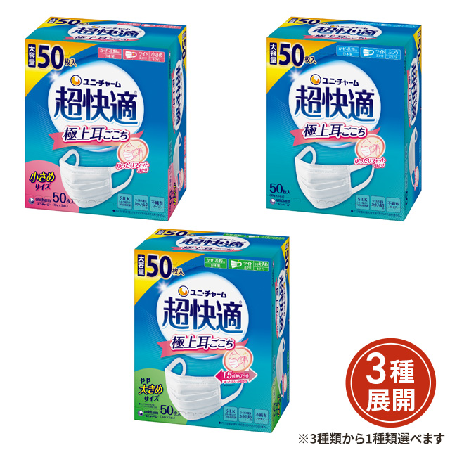 [3種類から1種類選択] 超快適マスク プリーツタイプ 50枚 ユニ・チャーム