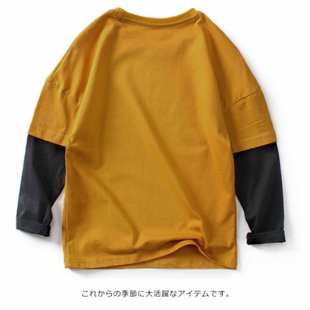 | おしゃれな子供用レイヤード風長袖Tシャツ。 お子様のお肌に優しいコットン100%素材を採用。 なクルーネック仕様♪ 襟ぐりの縫い目はテープでしっかり処理されており、お子様のお肌に優しく。 重ね着風にデザインされているから1枚着るだけでおしゃれなTシャツコーデが叶っちゃいます。 これからの季節に大活躍なアイテムです。 | |