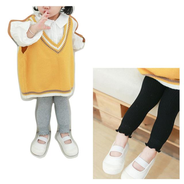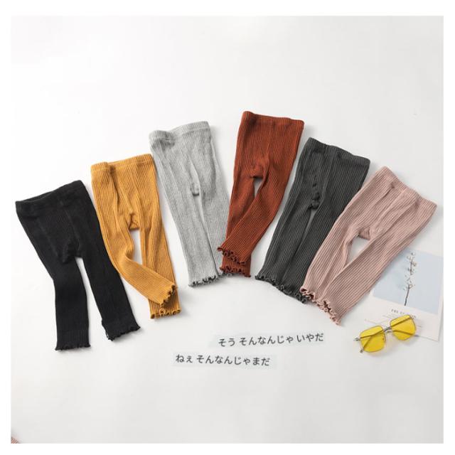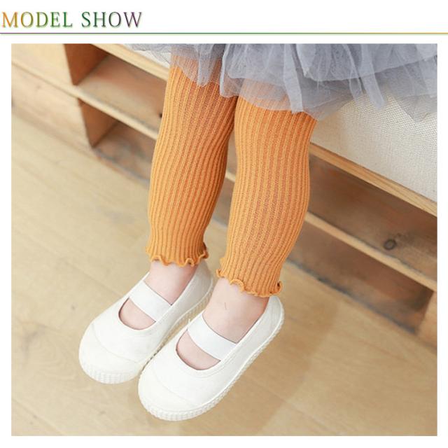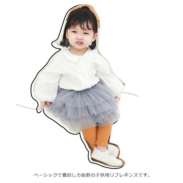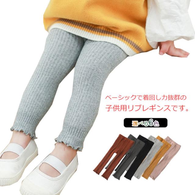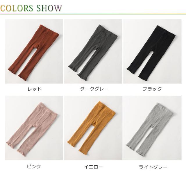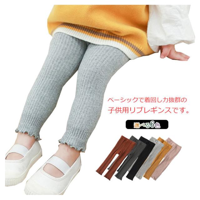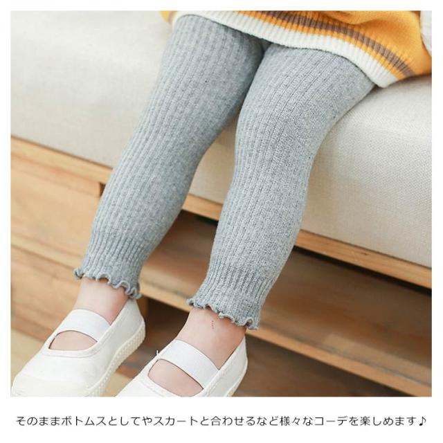 送料無料 リブレギンス キッズ レギパン スパンツ レギンス パンツ 子供服 女の子 ボトムス メロウフリル ウエストゴム 九分丈 無地 かわいい 春秋 春 秋