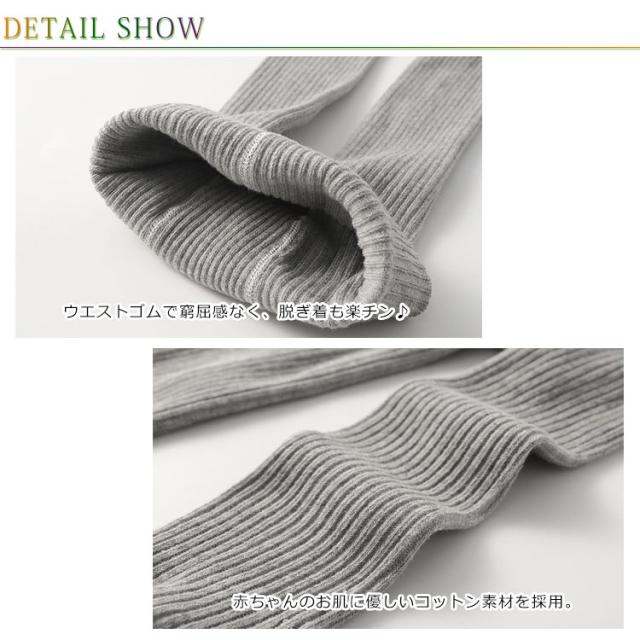 | で着回し力抜群の子供用リブレギンスです。 赤ちゃんのお肌に優しいコットン素材を採用。 ウエストゴムで窮屈感なく、脱ぎ着も楽チン♪ 裾口可愛いフレアー仕様♪ そのままボトムスとしてやスカートと合わせるなど様々なコーデを楽しめます♪ | |