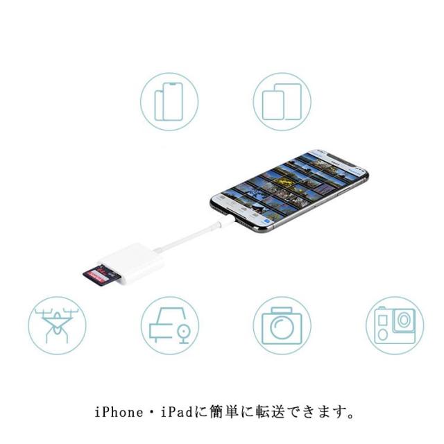 iPhone iPad 専用 SDカードリーダー メモリーカードリーダー MicroSD スマホ タブレット Lightning SDカード カメラ リーダー マイクロSDカードリーダー iPhone12 iPad Pro対応 写真 動画 音楽 転送 iPhone SDカードリーダー 送料無料