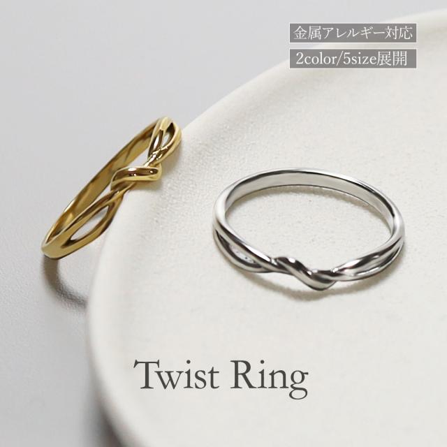 指輪 リング ツイストリング ねじれ ピンキーリング デザイン サムリング サージカルステンレス ステンレス 18k GP レディース メンズ つけっぱなし シルバー ゴールド 金属アレルギー シンプル 大人 かわいい プチプラ カジュアル おしゃれ