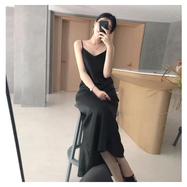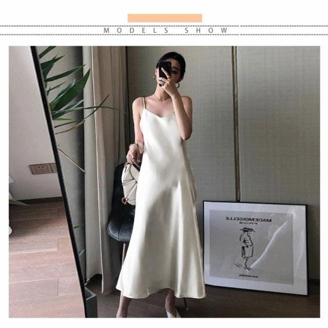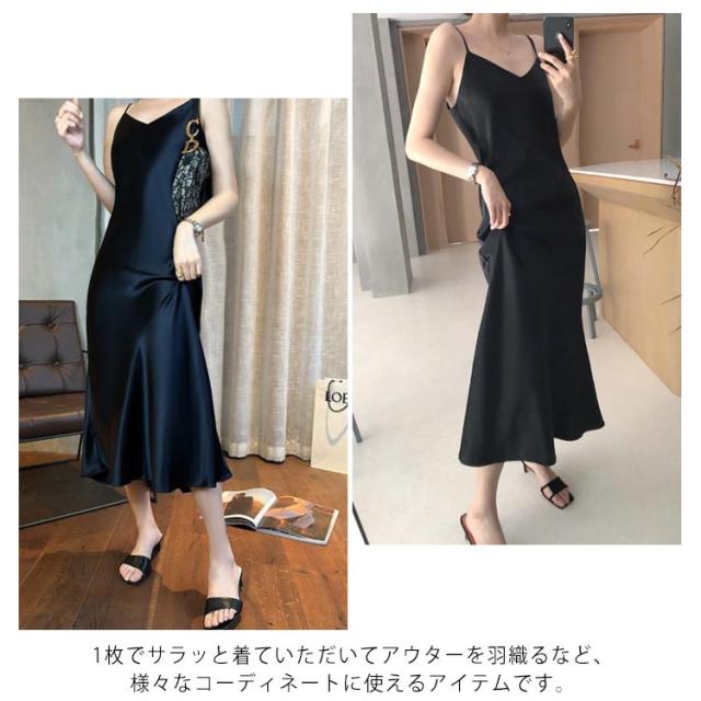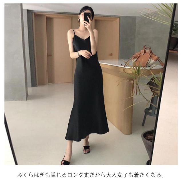 全3色×6サイズ!シルクタッチ キャミソールワンピース ロング丈 スリップ ワンピース キャミワンピ キャミワンピース Aライン インナー ドレス 春夏 おしゃれ 送料無料