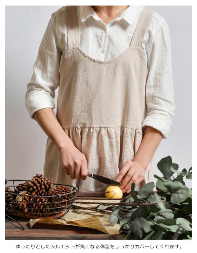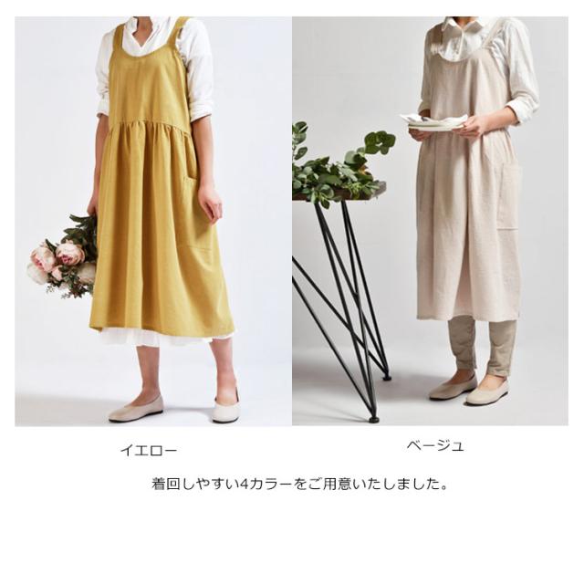 送料無料 綿麻エプロン リネン チュニックエプロン おしゃれ コットンリネン ナチュラル 楽ちん 着脱かんたん ロング 背付き かわいい キッチン 家事 カフェ 保育士 料理人 スーパー用 花屋 介護士 母の日 プレゼント ギフト 贈り物