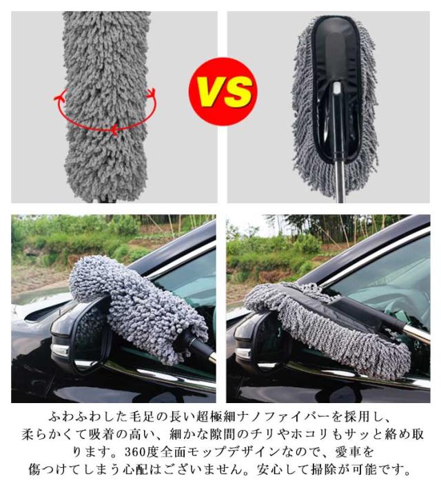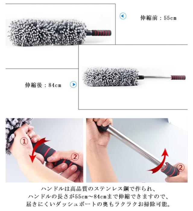 洗車用 ハンディモップ 洗車ブラシ 車用ほこり取り マイクロファイバー モップ ダスターブラシ 伸縮式 55〜78cm 傷防止 軽量 収納なし