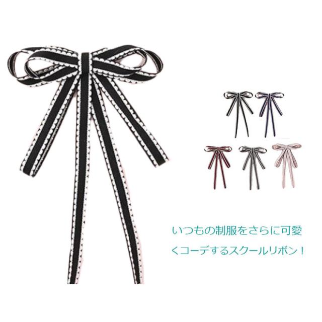 | いつもの制服をさらに可愛くコーデするスクールリボン! 柔らかくて手触りの良い素材を採用し、着心地も触り心地も抜群です。 ブローチ式やアジャスター式で簡単に装着可能で重ね着が苦手な方も気軽に挑戦できます。 たくさんのバリエーションの中から、毎日のリボンの着回しも楽しんでください♪ セーター、ニット、カットソー、ワンピースなどに簡単に合わせて、おしゃれとエレガントを出演。 | |