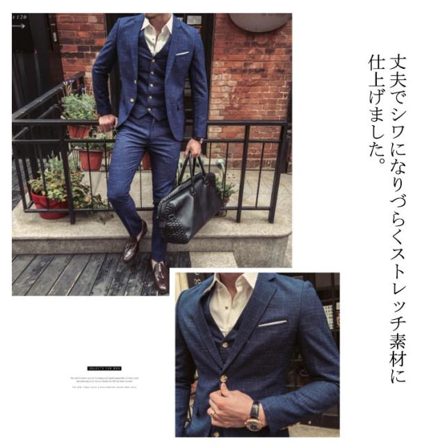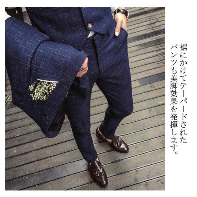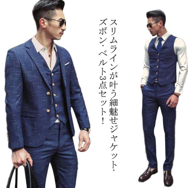 スーツ メンズ ビジネススーツ スリム 3ピーススーツ ジャケット ズボン ベルト 3点セット 上下セット セットアップ スタイリッシュスーツ スリムスーツ ノータック 紳士 フォーマルスーツ