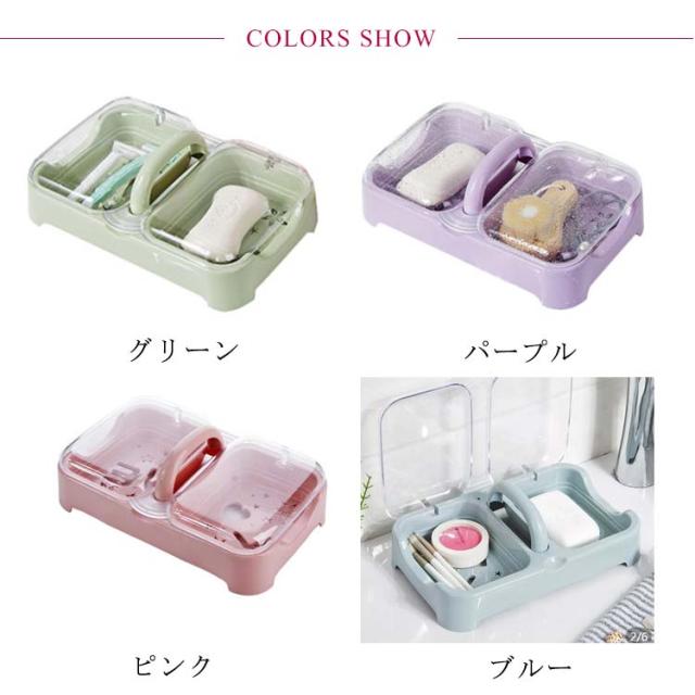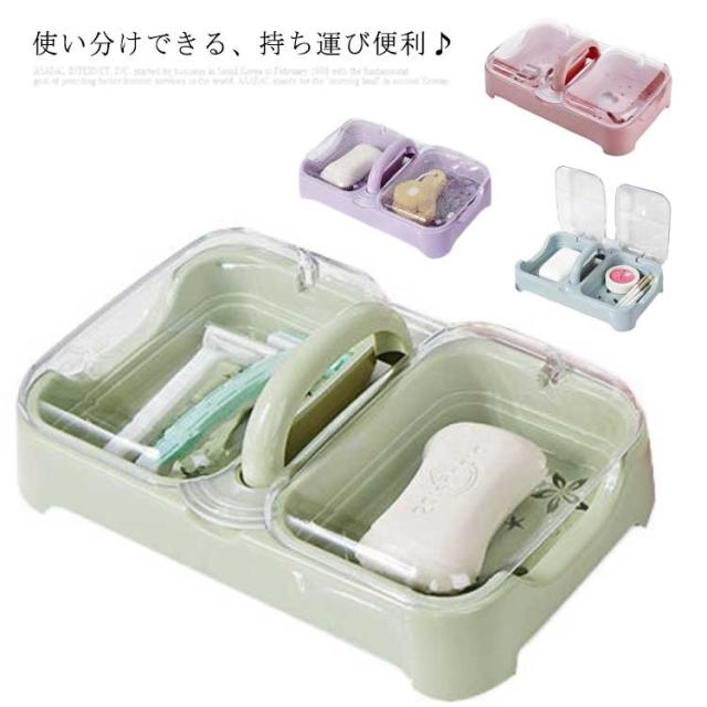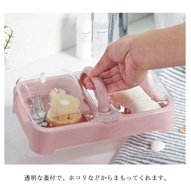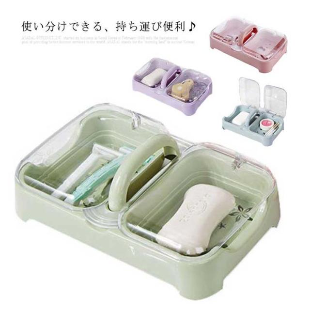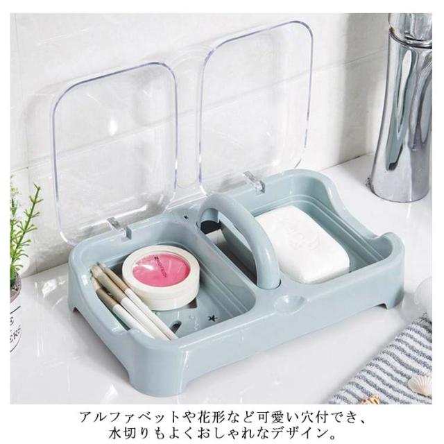 石鹸入れ 石鹸ケース 水切り ダブル フタ付き 持ち手付き 石鹸収納 大きめ 石けん箱 ソープ ケース 石鹸置き ソープディッシュ 洗面用具 バス用品