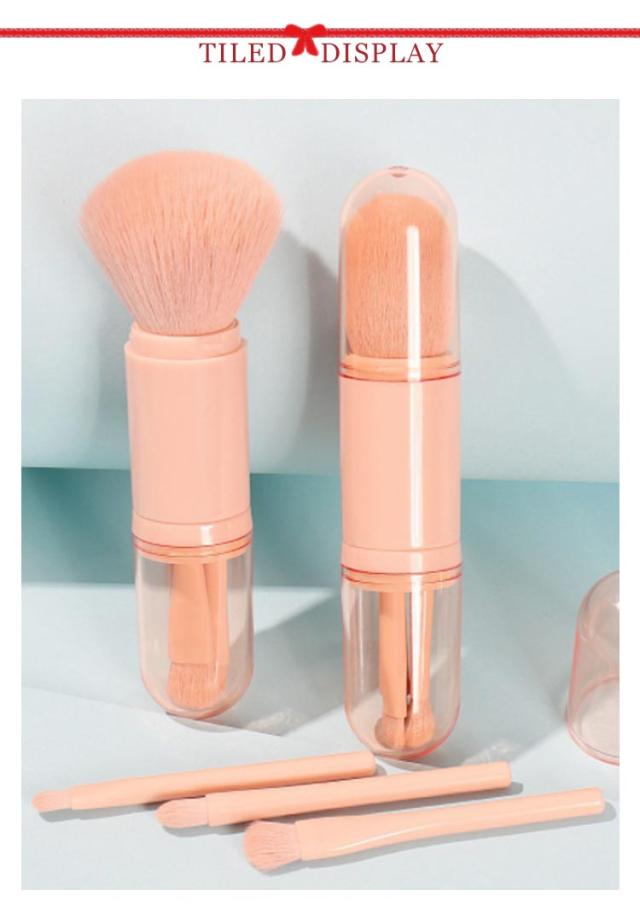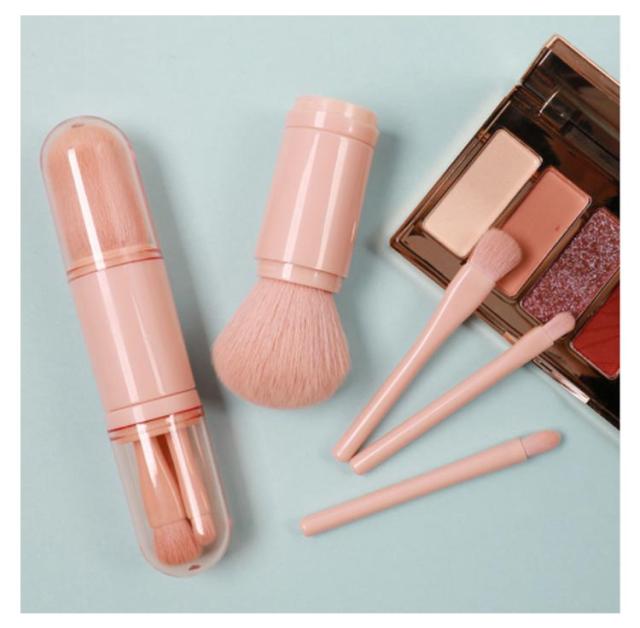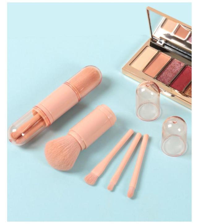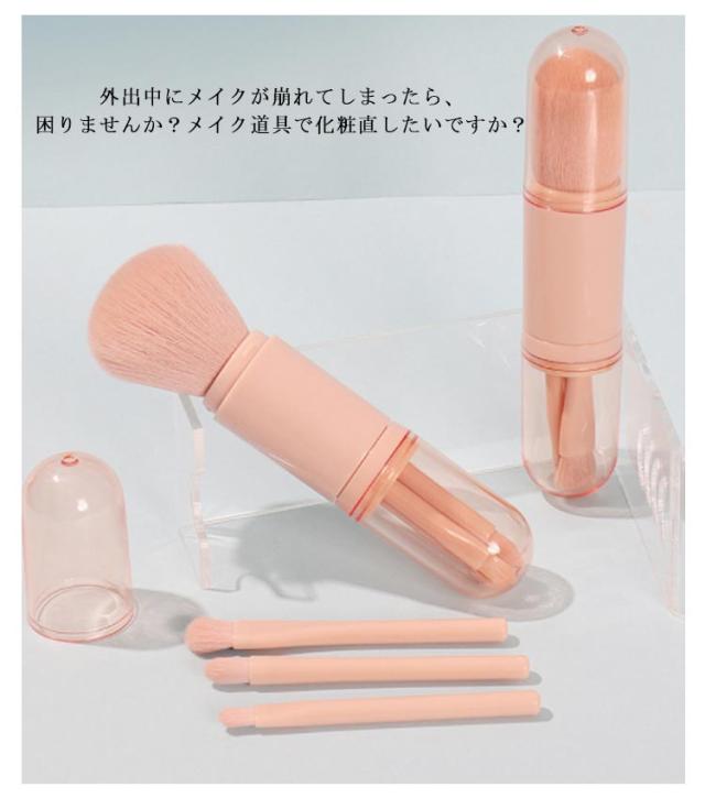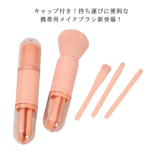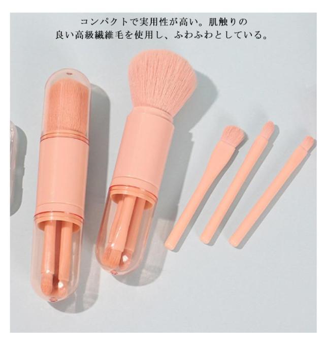 携帯用 化粧ブラシ メイクブラシセット 4本 makeup brush メイクブラシ メイク パウダーブラシ アイシャドウブラシ アイホールブラシ 収納ケース付き コンパクト 携帯便利