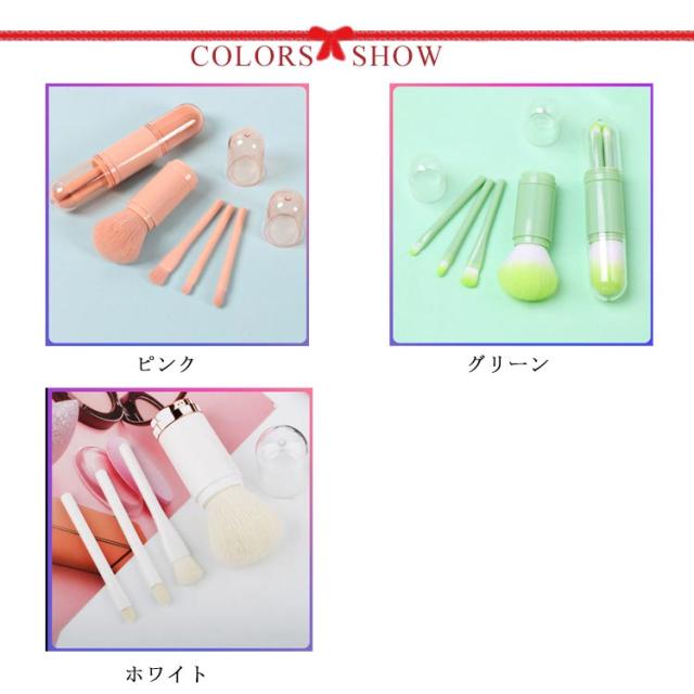 | サイズについての説明 | カラー:ピンク、グリーン、ホワイト セット内容:パウダーブラシ、大アイシャドウブラシ、小アイシャドウブラシ、アイホールブラシ 注:パウダーブラシの部分は回転式のデザイン。 |