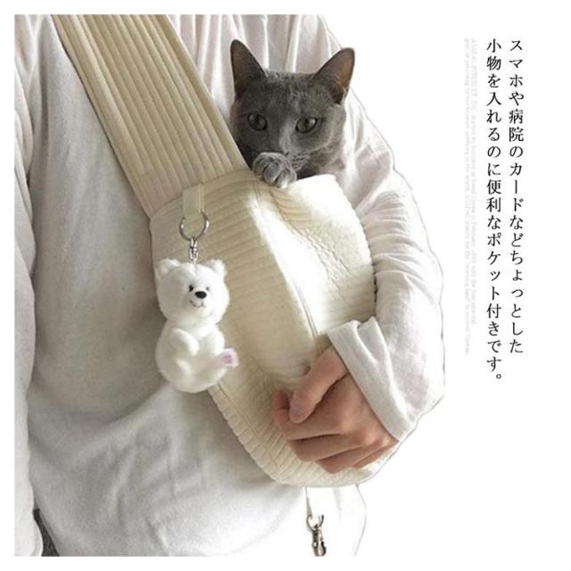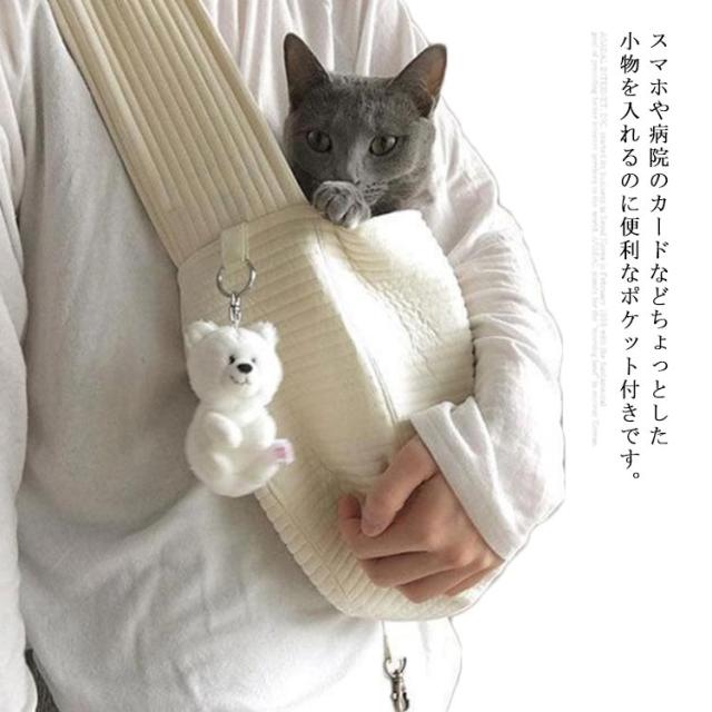 | スマホや病院のカードなどちょっとした小物を入れるのに便利なポケット付きです。 裏地は柔らかく気持ちいい素材を使用していいますから、ペットも安心、移動の不安を和らげます。 中にリードが付いてて脱走防止、安心なアイテムです。 | |