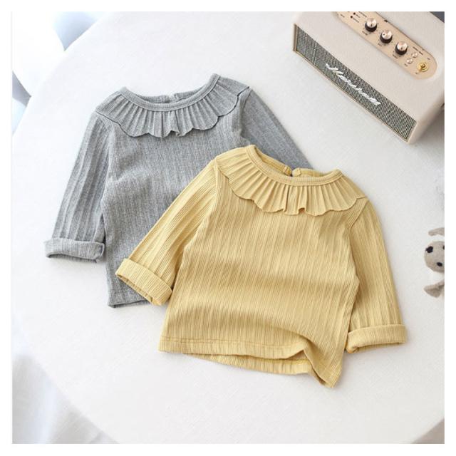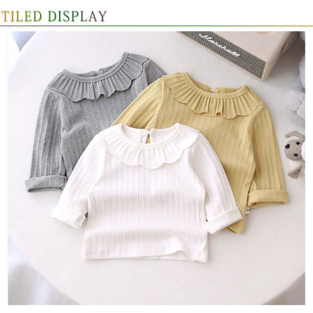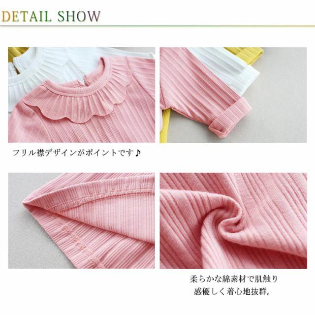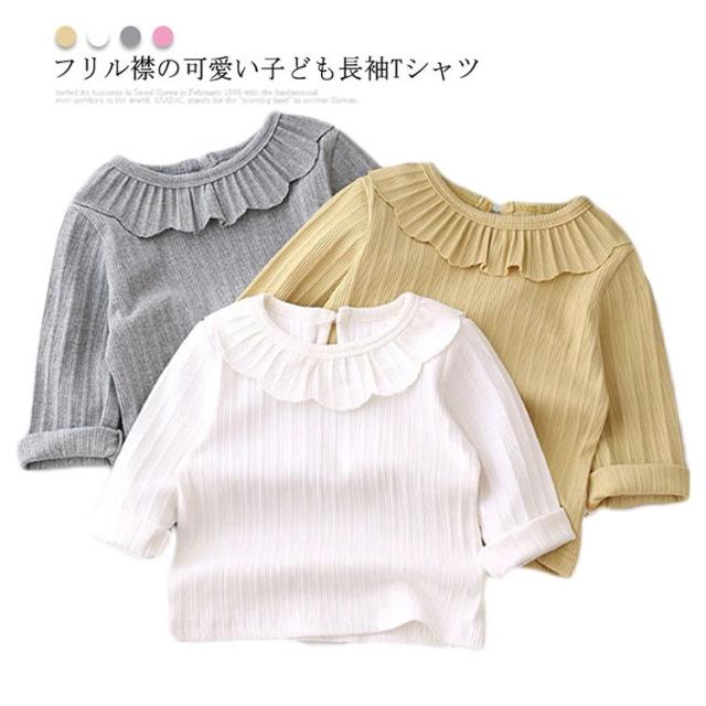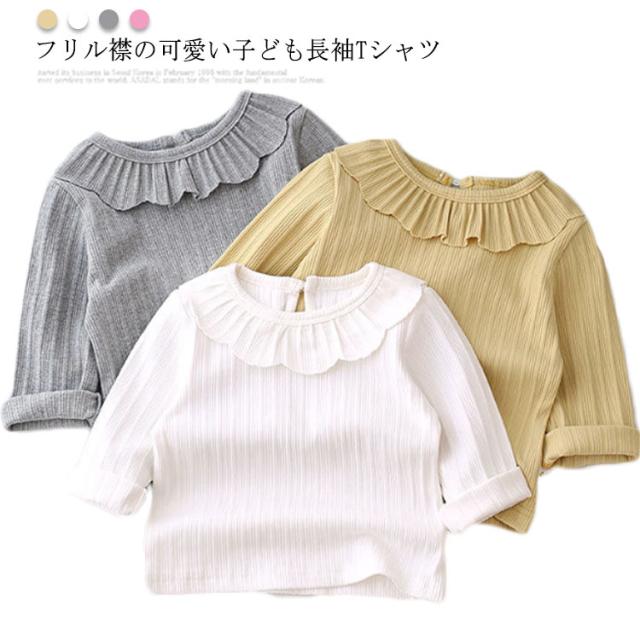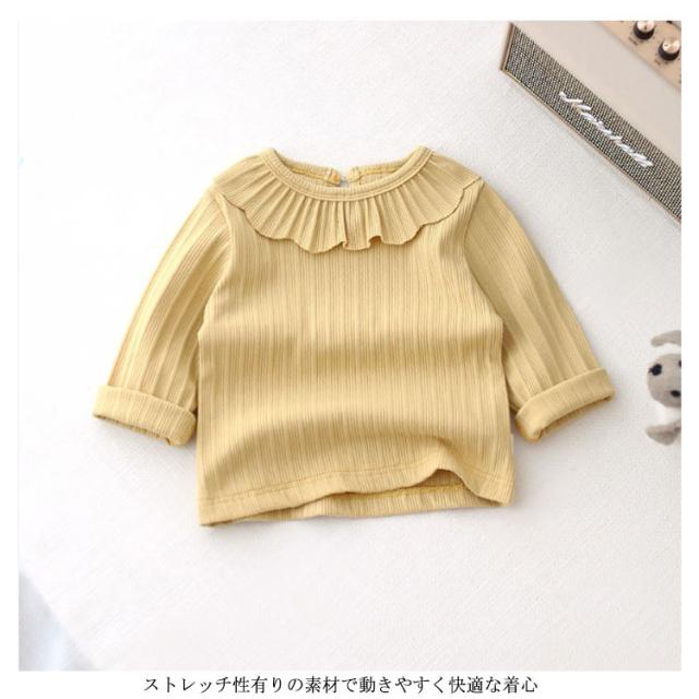 長袖Tシャツ ベビー カットソー キッズ トップス 長袖tシャツ 子供服 女の子 インナー フリル襟付き ストレッチ性 綿 春 秋 送料無料 可愛い 80 90 100 110 120