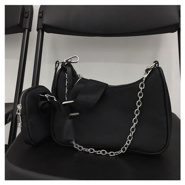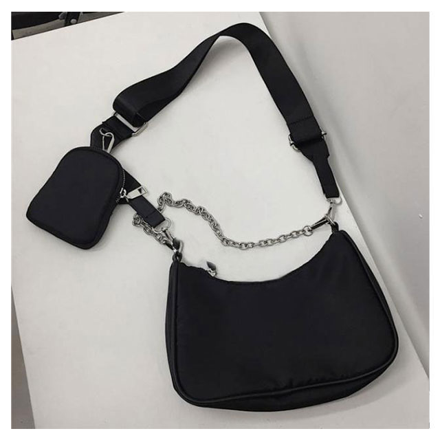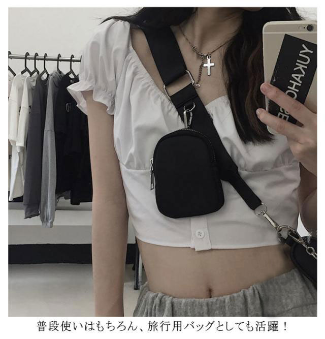ショルダーバッグ レディース 斜めがけ 大人 小さめ ナイロン 2WAY カジュアル ミニクロスバッグ メッセンジャーバッグ ポーチ付き 韓国風 学生 ブラック 3点セット