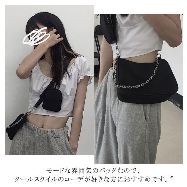 | サブポーチとチェーン付きのショルダーバッグ3点セットです。 通勤に必要な限の物が収納可能できます。 普段使いはもちろん、旅行用バッグとしても活躍! モードな雰囲気のバッグなので、クールスタイルのコーデが好きな方におすすめです。 | |