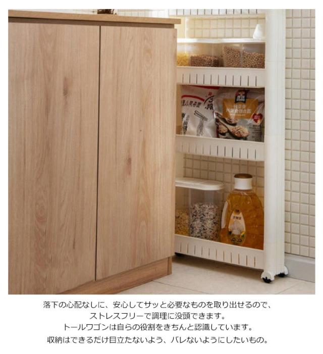 | ちょっとした隙間が統一感ある収納スペースに早変わり! 収納時の見た目がすっきりするので、見せないキッチン収納に最適です 進行方向キャスターと取手付き、握りやすい取手付きで、たくさん収納していても楽ラク引き出せます。 頻繁に取り出すアイテムもストレスフリーで手に取れます。 落下の心配なしに、安心してサッと必要なものを取り出せるので、ストレスフリーで調理に没頭できます。 トールワゴンは自らの役割をきちんと認識しています。 ホワイトのシンプルな主張しすぎないデザインで、他の家具と並べた時に悪目立ちしません。 さらに、キャスターが正面から見たときに隠れるようなデザインになっているので、正面からみるとキャスターワゴンとは思えないほどのカモフラージュ効果です。 ご家庭にぴったりのサイズを確認して、快適なキッチンライフ・収納活用に役立てていただけたら嬉しいです。 収納の達人をも唸らせる、“トータルワゴン”が、ご家庭のキッチンやランドリールームの快適空間作りに一役買ってくれます。 収納はできるだけ目立たないよう、バレないようにしたいもの。 | |