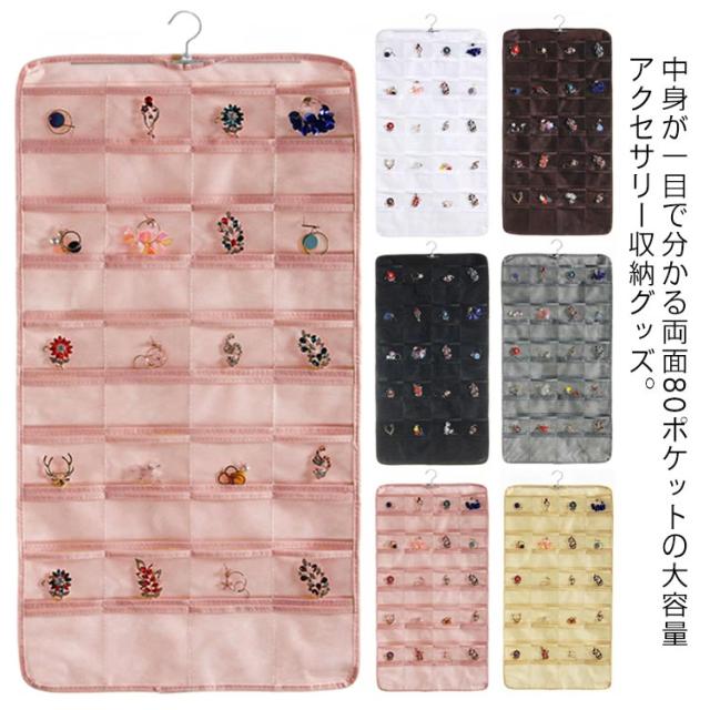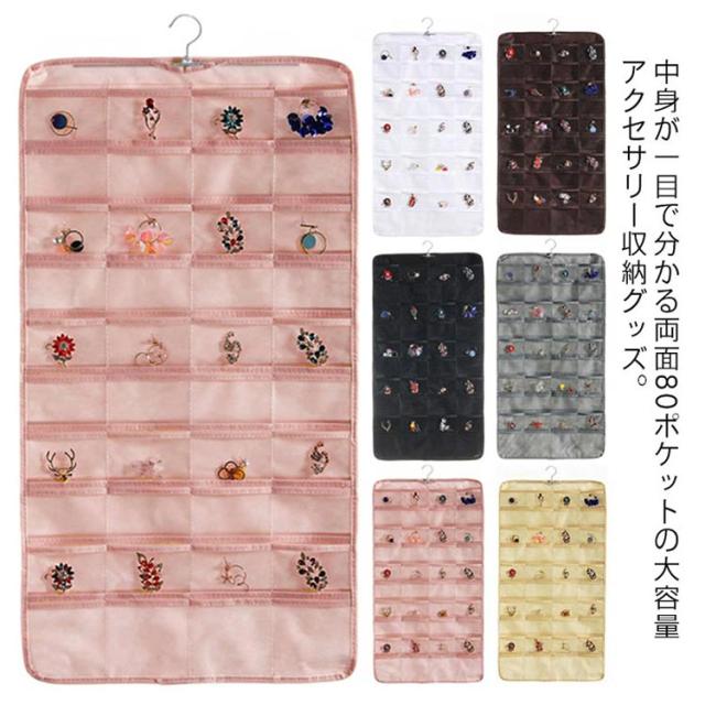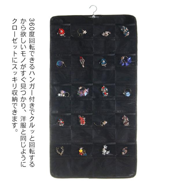 アクセサリー 収納 両面 ポケット 大容量 クローゼット ウォールポケット 吊り下げ 収納 ケース 360度回転ハンガー 透明 小物入れ ピアス 指輪 ブローチ ブレスレット