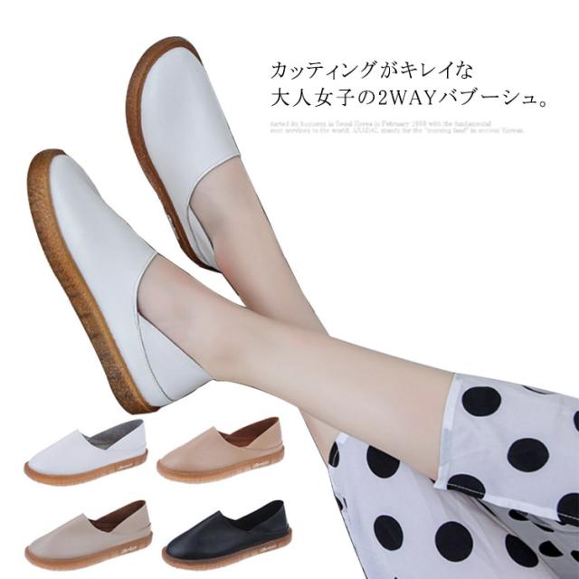 フラットシューズ パンプス ぺたんこ ラウンドトゥ 2wayバブーシュ 痛くない 歩きやすい 走れる 楽レディース フラットヒール ローヒール カジュアルシューズ ぺたんこ靴 ブラック ホワイト ベージュ ブラウン ローファー