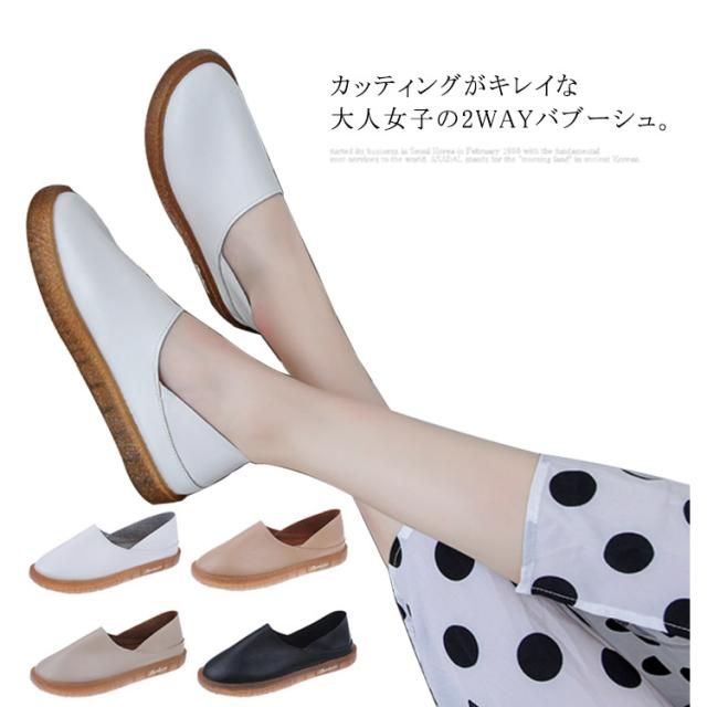 | カッティングがキレイな大人女子の2WAYバブーシュ。 ゆったり心地よい、なのに、おしゃれ。 履くだけでこなれる。 かかとは折れるデザインになっているので、バブーシュのように踏んでも履けます。 抱っこや大荷物のときも、脱ぎ履きらくらく! | |