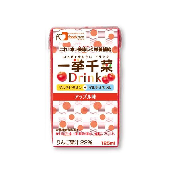一挙千菜ドリンクは、「ギュッ」とバランスよくビタミン、ミネラルを配合した果汁入り栄養補助飲料です。