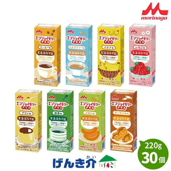 森永 クリニコ エンジョイゼリープラス いろいろセット 220g×30個(8つの味:コーヒー いちご バナナ プリン ミルクティー 抹茶 メロン キャラメル) 常温保存可能
