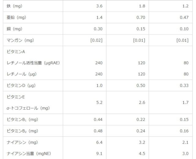 ※[ ]内は栄養素等表示基準値2015