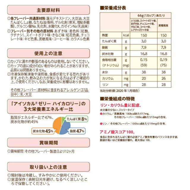 「アイソカルゼリー ハイカロリー」なら1カップ(66g)で、
