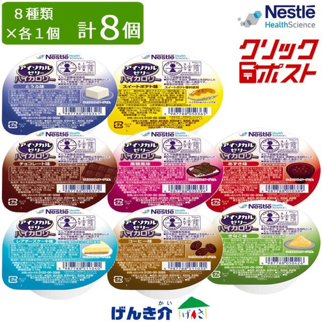 【クリックポスト便 送料無料】ネスレ アイソカル ゼリー ハイカロリー お試しセット 8種×各1個 計8個 栄養補助食品 健康食品 介護食品