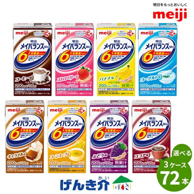 介護食 メイバランス mini 紙パック 72本 (24本×3ケース) 3つ選んで 組み合わせ自由 メイバランスミニ 高カロリー食品 濃厚流動食 【送料無料】